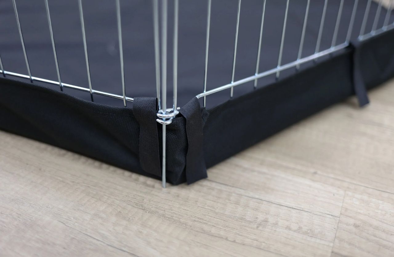 Förhindrar att kaninen gräver sig ut samt skyddar golvet om man vill ha hagen inomhus. Skyddar även känsliga tassar om marken är våt.