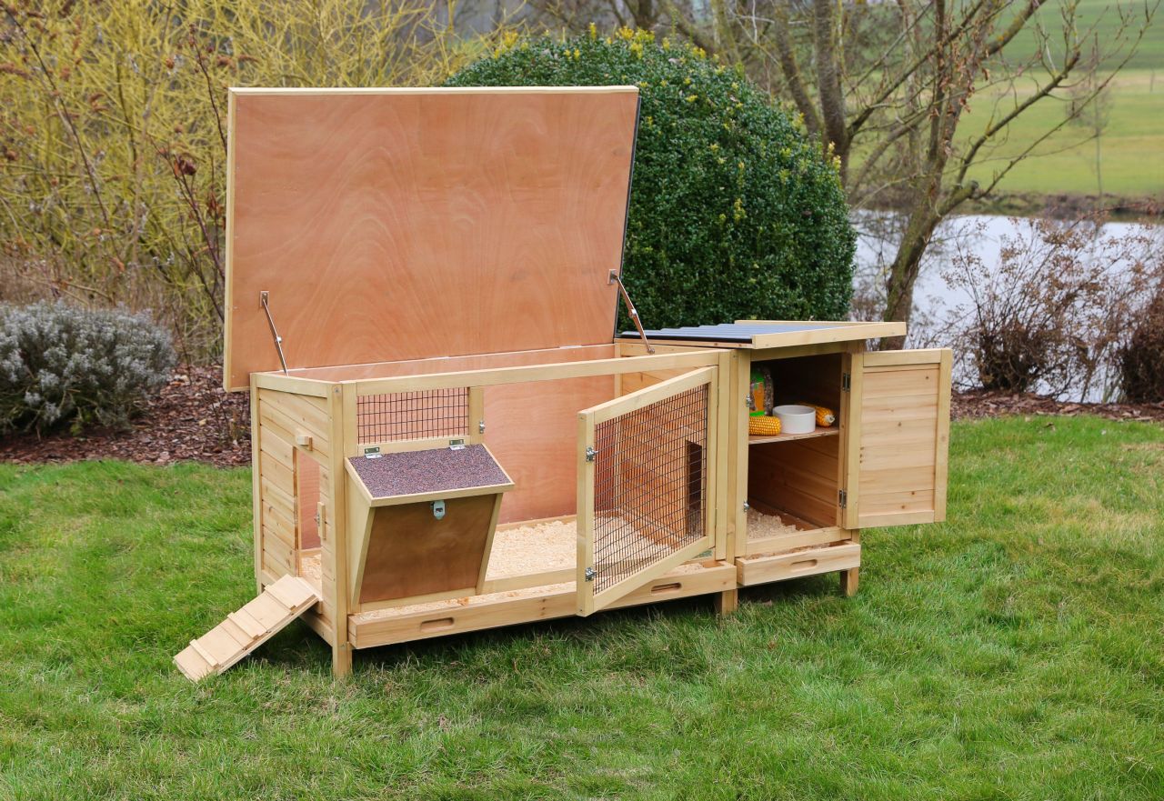 - Öppning med ramp som gör att kaninen kan gå rätt ut i en extra hage om man så önskar.