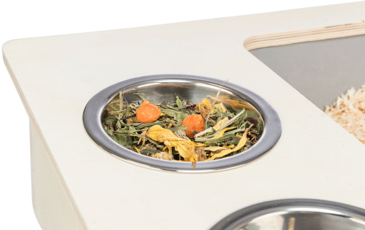 70x41x47cm. De flesta kaniner pluttar samtidigt som de äter hö varför den här stationen är mycket smart och genomtänkt!